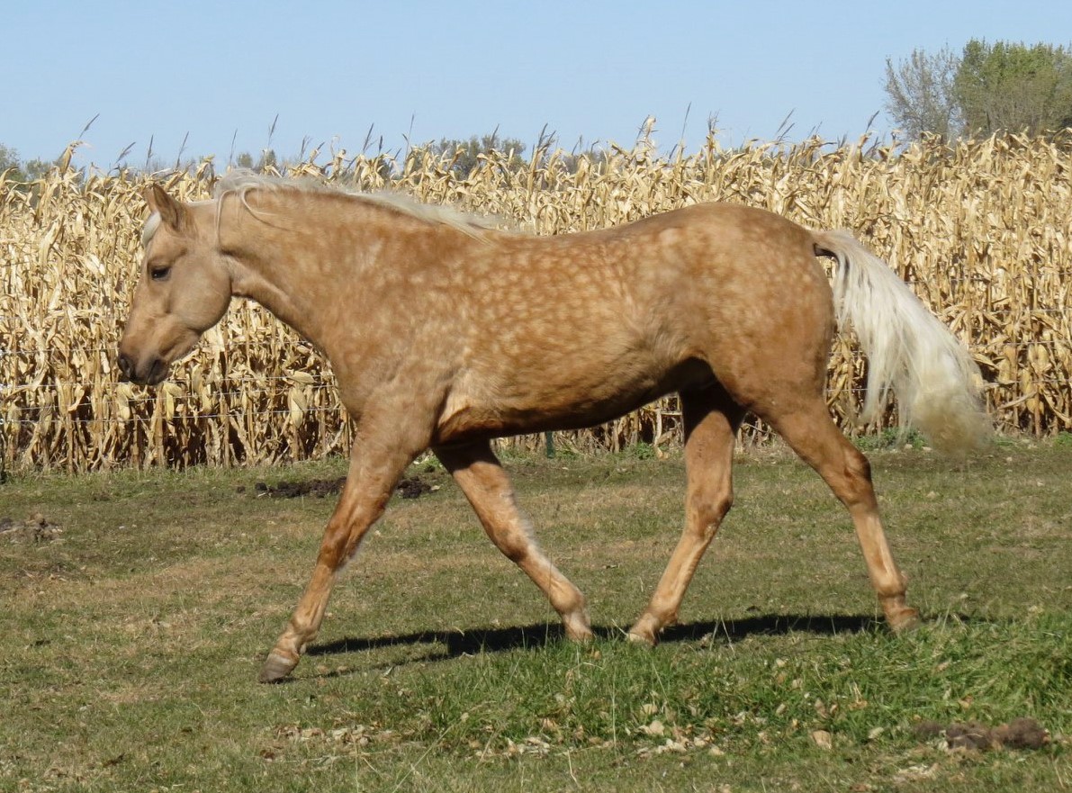 Description: Kristoff, or Dakota's Prairie King (DBJ's Second in Command x Dakota's Prairie Rose), is one of our new upcoming stallions for the Prairie Winds Morgan Farm. As our first palomino stallion, we expect big things out of him and he's sure showing up for the task. So far in his training he has proven himself to be quite smart and spirited. He doesn't lack any flash and we do expect to see some of that in the show ring next year.