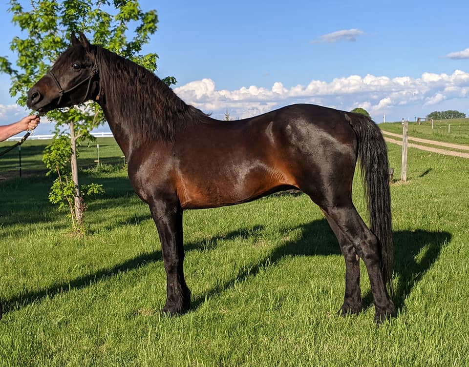 Casey has a fiery personality that's hard to ignore and has a "look at me" attitude. Despite being smaller built, he still produces big foals, no matter the type of mare. Casey has been used on other Morgans as well as some Quarter horses and Morabs.