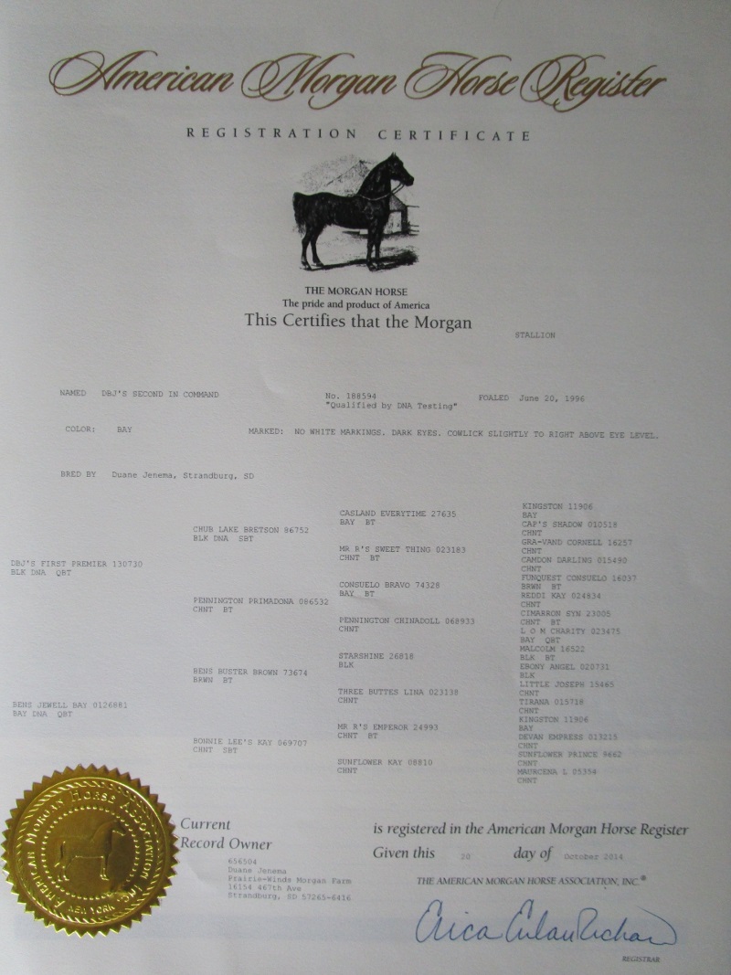 If you are interested in breeding your mare with DBJ's Second in Command, his stud fee is $600 plus $2/day mare care.
