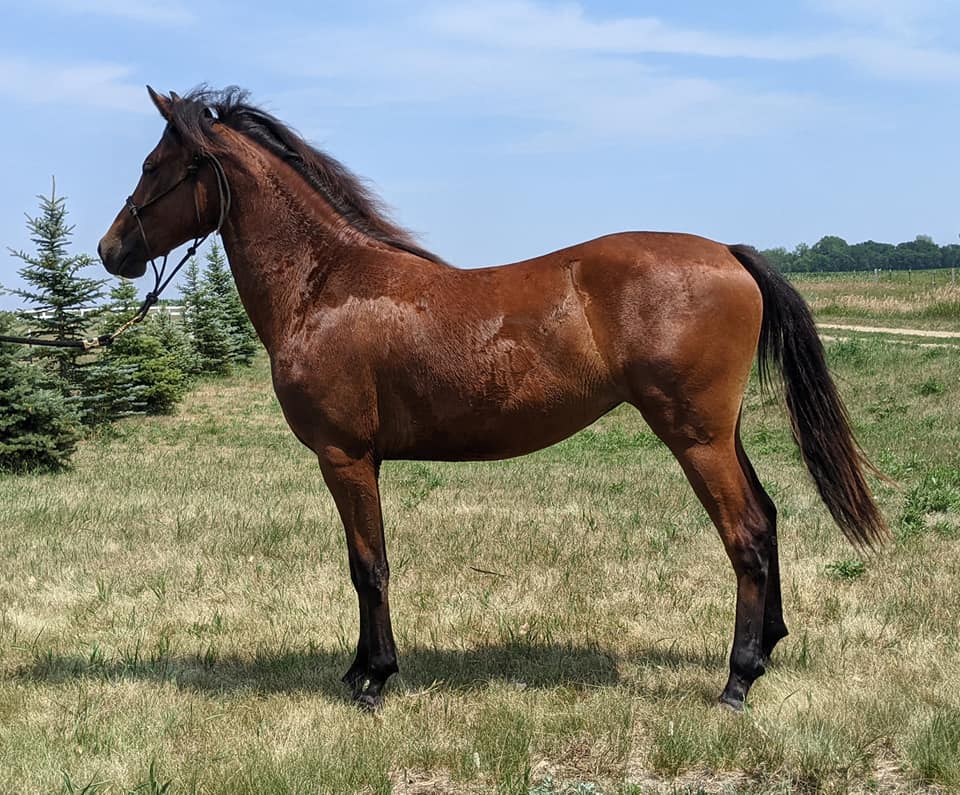 Description: Congratulations to Cheyenne and Privilege with their bay filly! She was born early morning on July 7th, and she is just beautiful! We will be retaining this filly for the future of the farm.