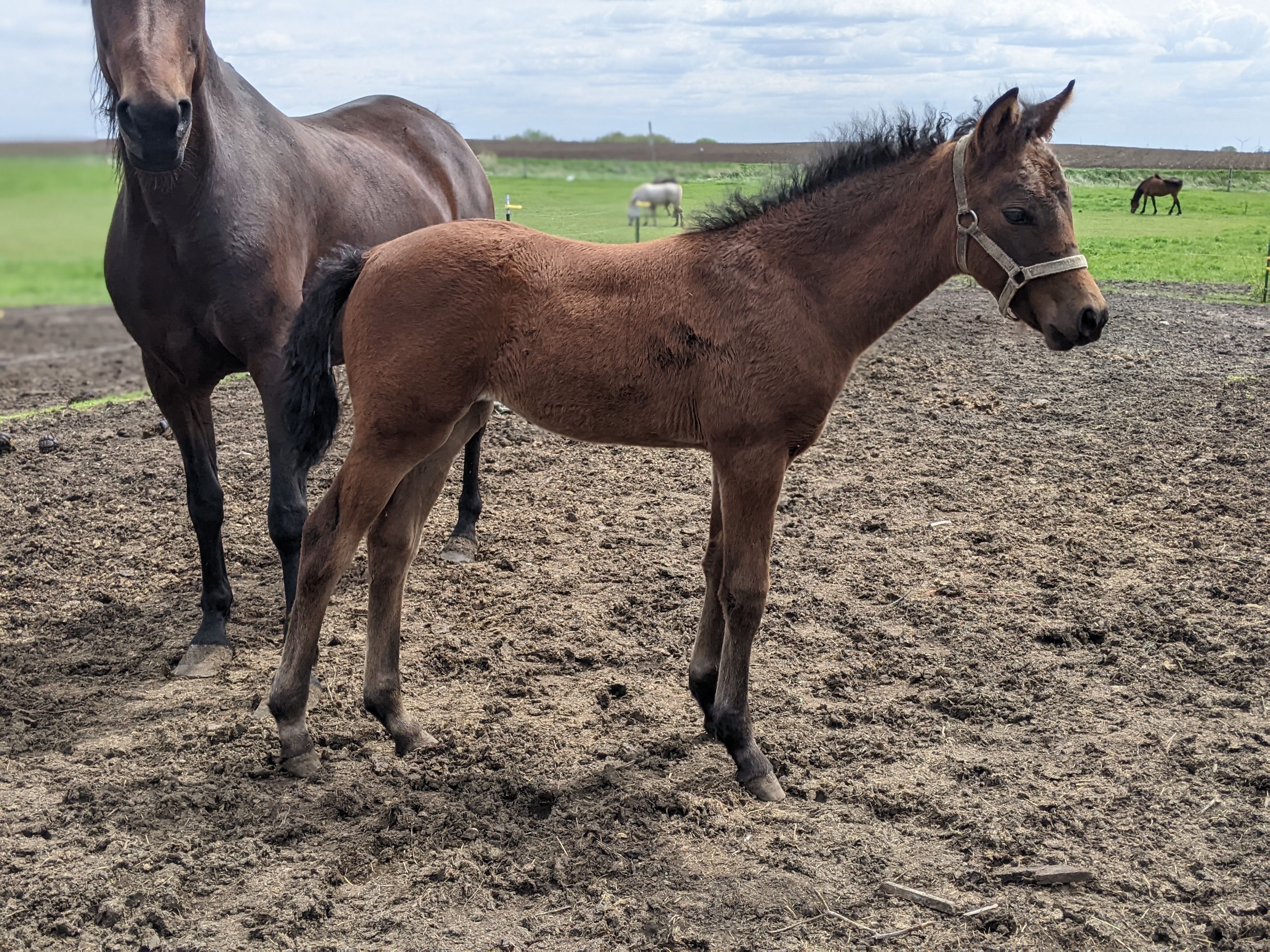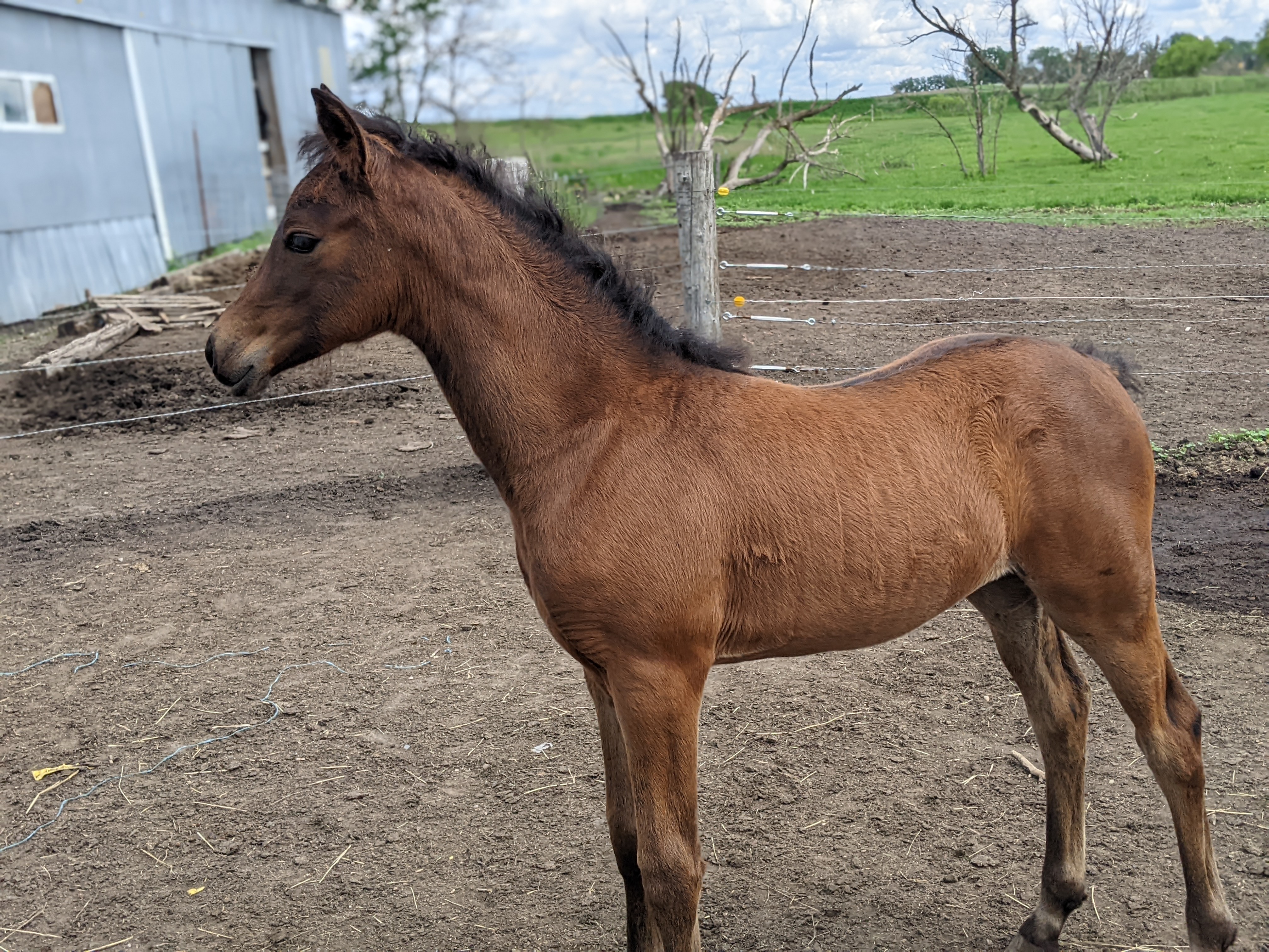 Description: Congratulation May and Casey! What a beautiful bay filly they had. This is the first time we have tried this cross and we are very pleased with the results!
