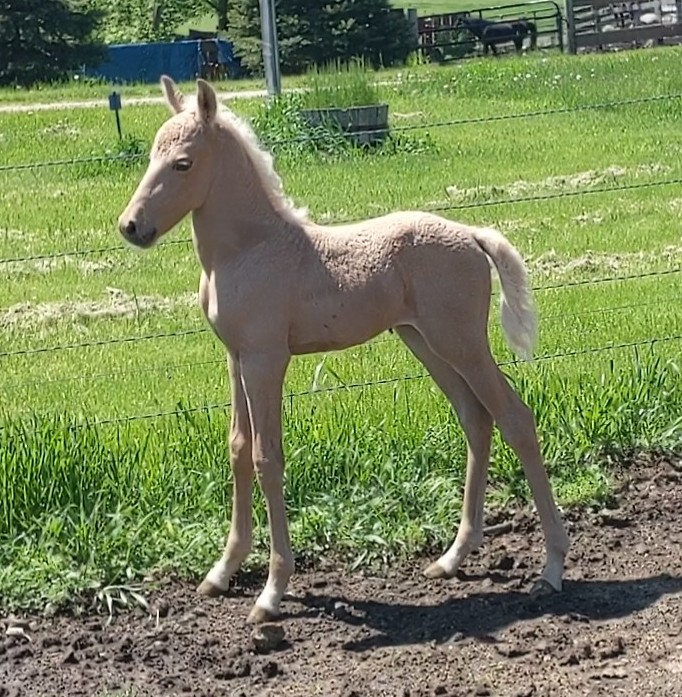 Description: Congratulations to Mira and Kristoff on their palomino colt! Finally! We've waited 6 long years for her to have another foal. This is the first foal Mira has had since 2016 when she lost her little filly in a thunderstorm.